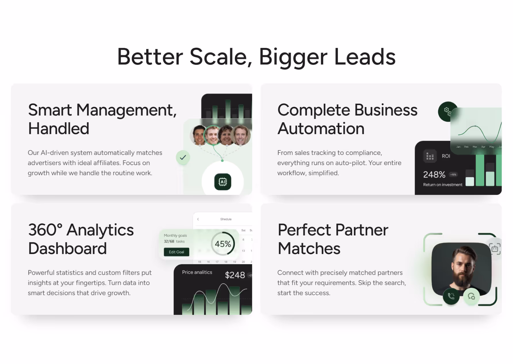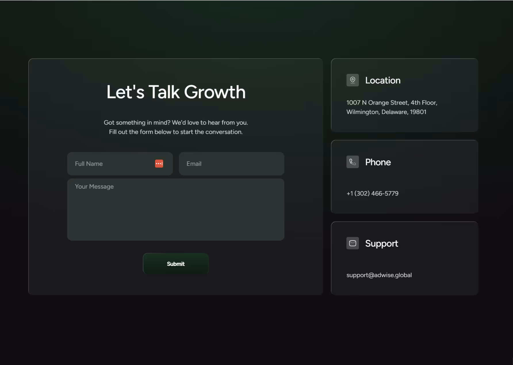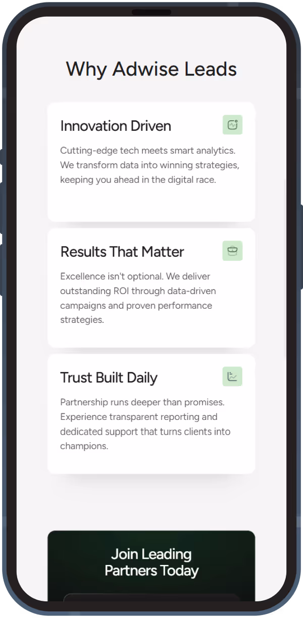Для проекта Adwise я разработал современный, технологичный и доверительный визуальный стиль, ориентированный на B2B‑аудиторию в сфере affiliate-маркетинга. Основная цель дизайна — подчеркнуть экспертность бренда и упростить восприятие комплексных сервисов платформы.